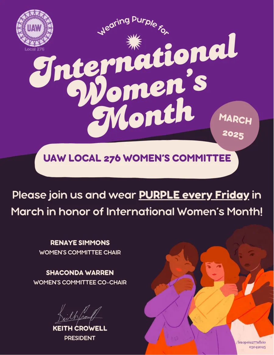 Please join us and wear PURPLE every Friday in March in honor of International Women's Month!