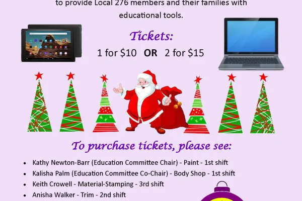 UAW Local 276 Education Committee Christmas Raffle Fundraiser