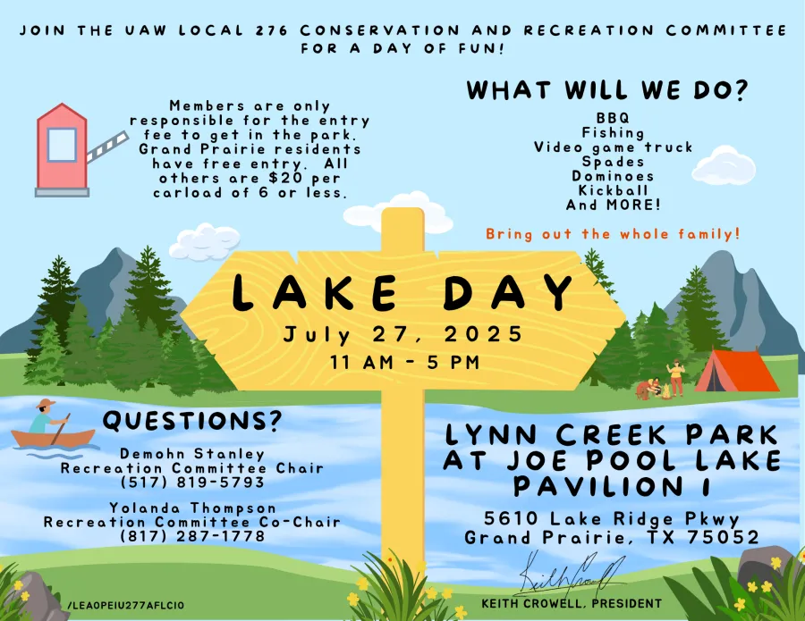 Join the UAW Local 276 Conservation and Recreation Committee for a day of fun!